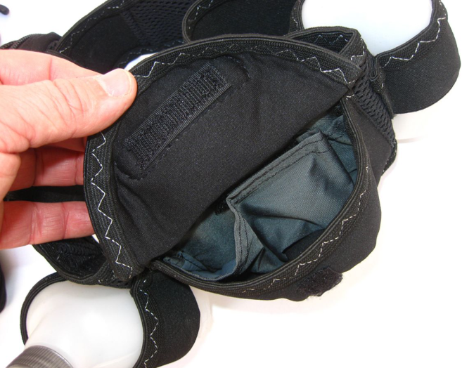 Las botellas están en contacto dentro del cinto con un material que funciona de aislante térmico para mantener la baja temperatura de los líquidos, al separarlo del cuerpo del corredor.