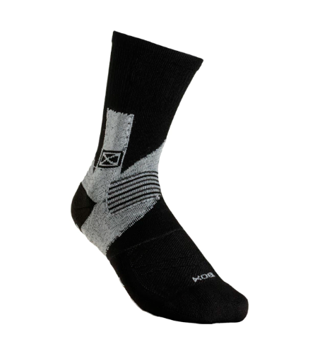 Medias estabilizadoras de tobillo pensadas para el deportista. Desarrolladas para contribuir a la re-circulación del sistema sanguíneo, a la contención de los músculos y a la estabilidad de los ligamentos laterales del tobillo. Colabora en la prevención de la fascitis plantar por la compresión transmetatarsal. Puño doble elastizado, caña y pie anatómicos, puntos de apoyo sectorizados con mayor densidad para absorber impactos. Talón y puntera reforzados, costura de puntera extra plana. Secado rápido gracias a su composición.