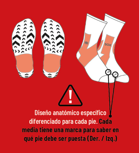 - Diseño Anatómico: Cada media posee una marca que indica en que pie debe ser colocada, para garantizar un correcto funcionamiento de la tecnología.