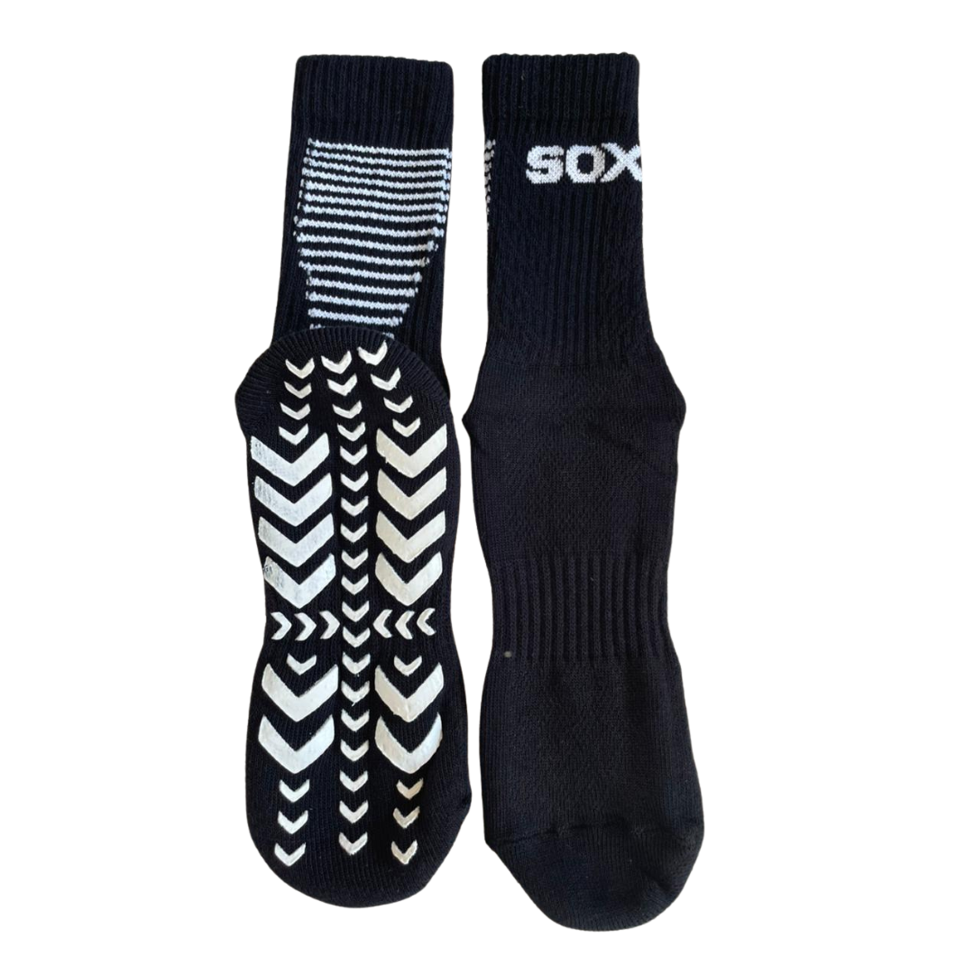 Puño doble y caña elastizados, pie con media toalla, planta del pie con antideslizante, costura de puntera extra planta. Talón y puntera reforzados. Ajuste y calce perfectos gracias al agregado de spandex.