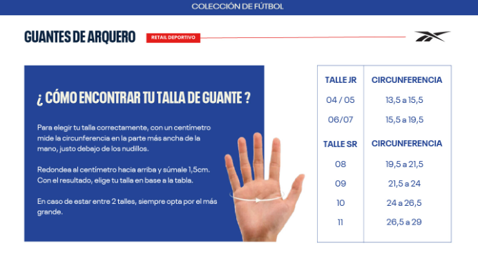 Para elegir el talle correcto, se recomienda medir la circunferencia de la palma de la mano justo por debajo de los nudillos, sin incluir el pulgar.