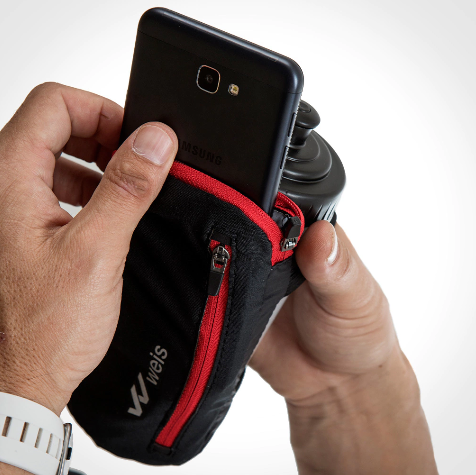 – Respaldo de tela impermeable para proteger el móvil de la humedad.