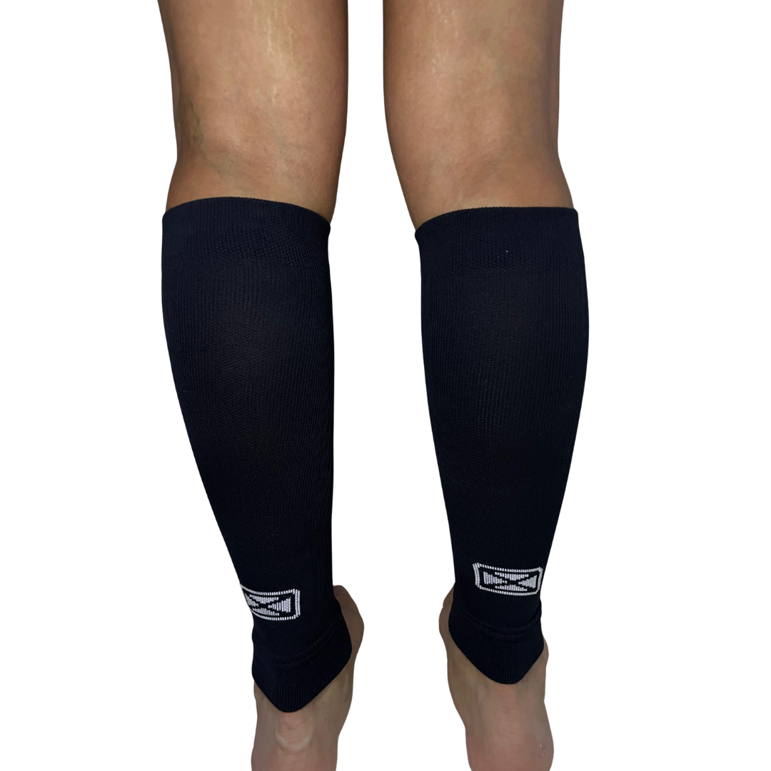 Se extiende desde el tobillo hasta la parte inferior de la rodilla. Pantorrilleras de compresión graduada pensadas para el deportista. Desarrolladas para contribuir a la re-circulación del sistema sanguíneo y a la contención de los músculos. Puño superior e inferior doble. El agregado de puntos de contacto permite la relajación de las tensiones propias del pie. Secado rápido gracias a su composición. Permiten que el usuario las combine con medias específicas como soquetes para running, por ejemplo.