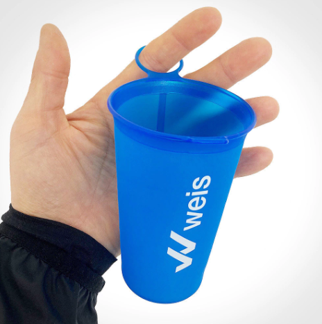Con un peso de solo 9 gramos, el vaso plegable SOFT CUP es liviano y reutilizable, con una capacidad total de 200 ml. Su borde rígido y una presilla ergonómica para el pulgar ofrecen mayor estabilidad para llenarlo fácilmente y beber sin salpicaduras mientras se corre, o sin quemarse con líquidos calientes como sopa en algún punto de avituallamiento.