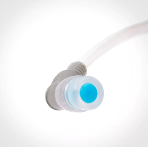 Incluye una válvula antigoteo que reduce el esfuerzo de succión y permite que el líquido salga solo cuando es mordida con posición de bloqueo abierto/cerrado, y un CONECTOR PLUG AND PLAY que facilita la conexión y desconexión del tubo con la bolsa sin perder líquido, incluso cuando está llena.